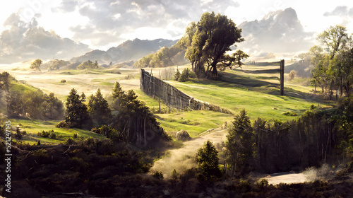 © 4K_Heaven, Naklejka premium Artistic conception of beautiful landscape painting of nature, background illustration, tender and dreamy design.