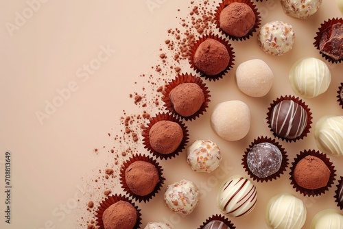 © Sri, Fototapeta premium Artistic Delight - Round Chocolate with Abstract Line Texture - Top View