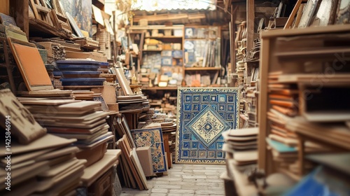 © In, Fototapeta premium Artistic Display of Historical Tiles in a Craft Shop