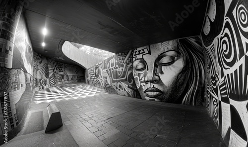 Obraz premium Artistic expressions in public spaces, black and white street art photo