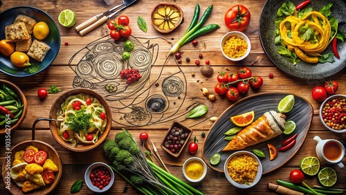 Fototapeta premium Artistic Food Photography: Drawn Line Style for Culinary Delights