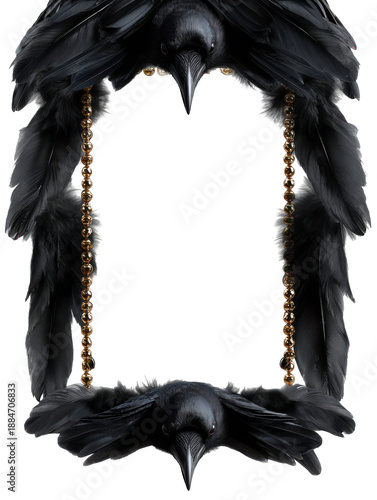 © Oleksii, Naklejka premium Artistic frame with ravens and gold beads