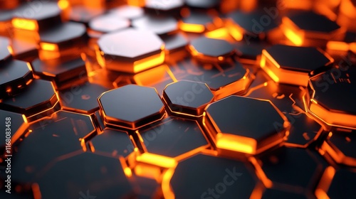 © BocchiArt, Obraz premium artistic hexagonal connection with orange color