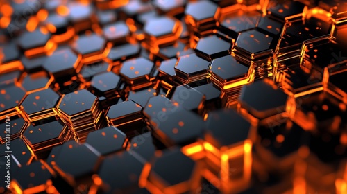 © BocchiArt, Obraz premium artistic hexagonal connection with orange color
