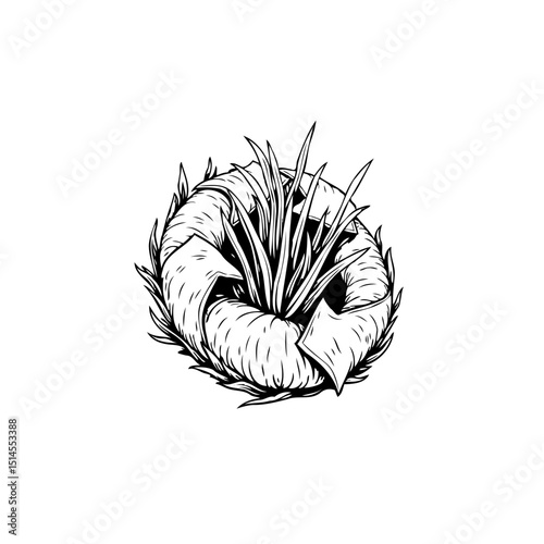 © rinie yuniartini, Obraz premium Artistic illustration of a coiled plant with sharp leaves, nature drawing