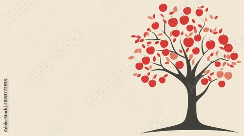 Obraz premium Artistic illustration of a tree with vibrant red apples against a light...