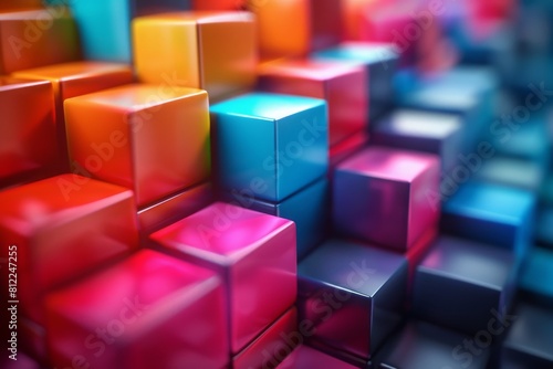 Obraz premium Artistic image of cubes displaying a colorful gradient from warm to cool tones with a soft blur