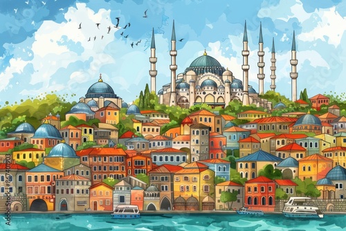 Obraz premium Artistic image of Istanbul with mosque, Storybook Illustration
