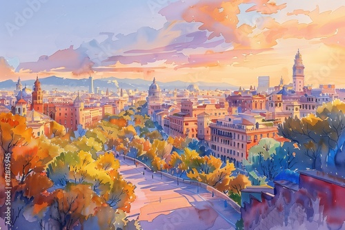 © ARTenyo, Fototapeta premium Artistic landscape watercolor painting