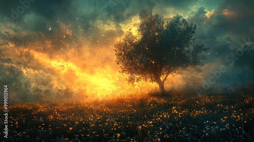 © Dee, Fototapeta premium Artistic Landscape with Lynx and Vibrant Skies
