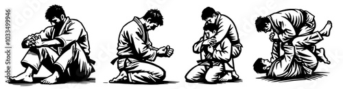 © Luka, Fototapeta premium artistic line drawing of a judoka demonstrating a perfect stance in judo black vector