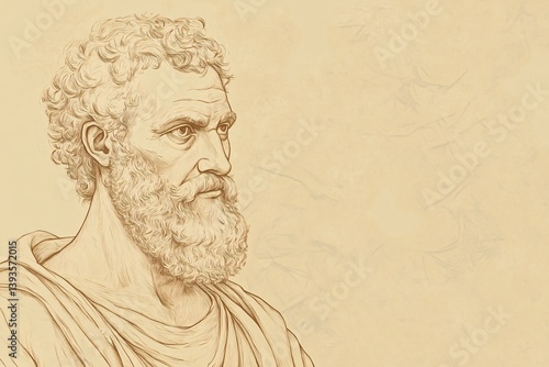 Fototapeta premium Artistic Line Drawing of Anaxagoras with Lined Features and Ample Copy Space