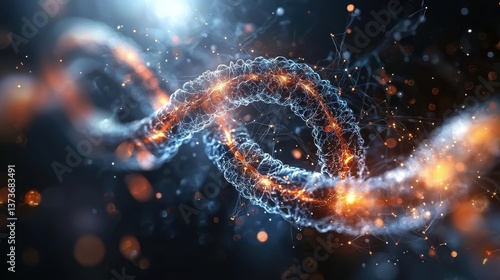Obraz premium Artistic Microscopic Scene of Coiled Chromosomes with Abstract Lights and...