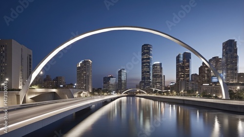 © suja, Naklejka premium Artistic Modern Structure Blending with Nature at Dusk