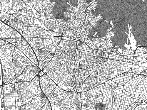 © W&S Stock, Fototapeta premium Artistic monochrome city map of Kofu, Japan, created in a hand-drawn style.