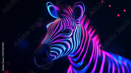 Fototapeta premium Artistic neon zebra glowing in vivid vibrant hues picture