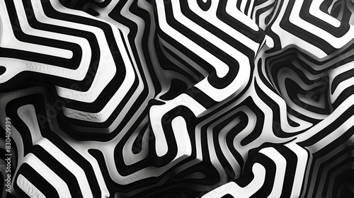 Obraz premium artistic neurographic design in black and white with geometric patterns...