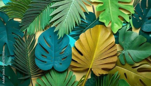 Naklejka premium Artistic paper style tropical leaves, unique and modern look with layered texture
