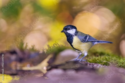© Monikasurzin, Obraz premium Artistic photo of a beautiful great tit. Parus major.