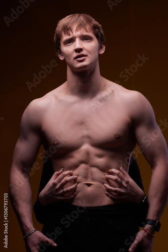 © Евгений Вершинин, Naklejka premium Artistic Pose Displaying a Muscular Male Model That Exudes Strength and Confidence