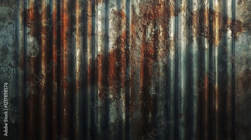 Fototapeta premium Artistic representation of an old and rusty zinc sheet wall, capturing the vintage style and corrosion pattern of metal in a retro concept,