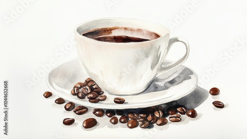 Fototapeta premium Artistic set of vector coffee beans and coffee cup drinks isolated on white background,hand-drawn vector,hot coffee drinks,cafe shop,modern flat design,Fashionable and cute coffee motif concept.