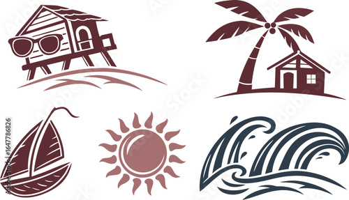 Obraz premium Artistic Summer Logos: Sun, Waves & Abstract Designs