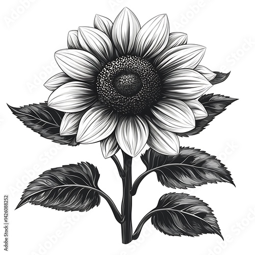 Fototapeta premium Artistic sunflower bloom in engraved lines high resolution picture