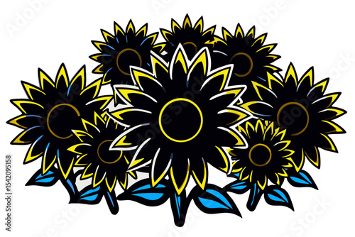 Fototapeta premium Artistic Sunflower Cluster Design Featuring Bold Black Petals and Yellow Accents