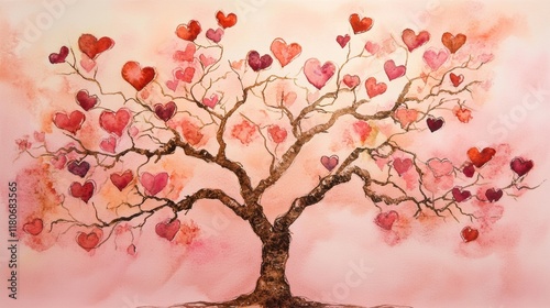 Fototapeta premium Artistic Tree with Heart-Shaped Leaves in Soft Brown Tones