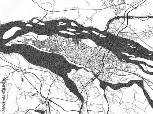 Naklejka premium Artistic urban sketch of Cuttack, India, detailed in black and white map form.