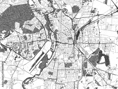© W&S Stock, Naklejka premium Artistic urban sketch of Halle, Germany, detailed in black and white map form.