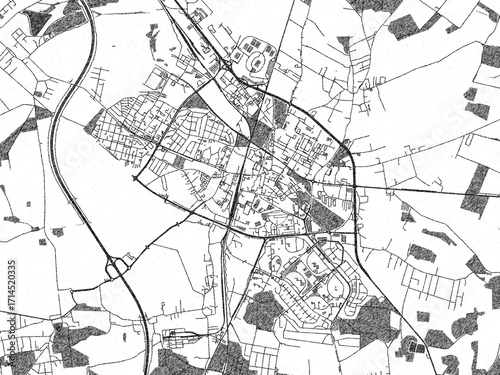 © W&S Stock, Naklejka premium Artistic urban sketch of Lubin, Poland, detailed in black and white map form.