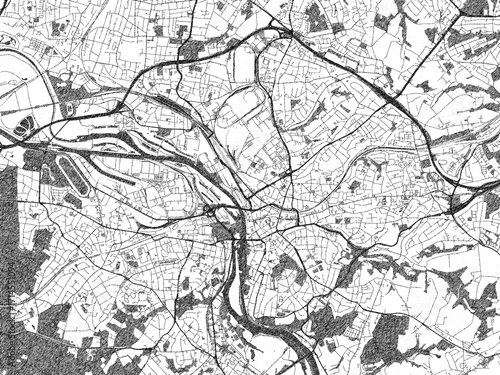 © W&S Stock, Naklejka premium Artistic urban sketch of Mulheim, Germany, detailed in black and white map form.