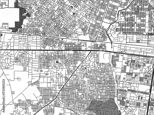 Naklejka premium Artistic urban sketch of Nangloi Jat, India, detailed in black and white map...