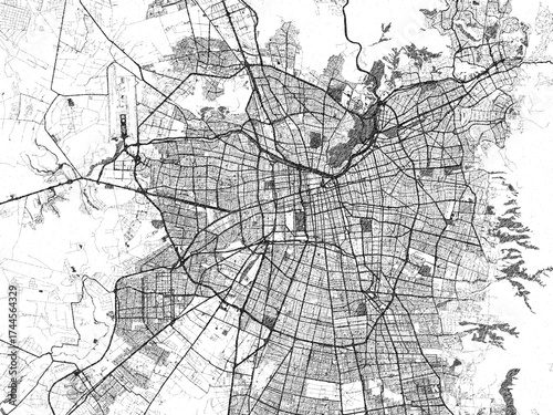 © W&S Stock, Fototapeta premium Artistic urban sketch of Santiago, Chile, detailed in black and white map form.