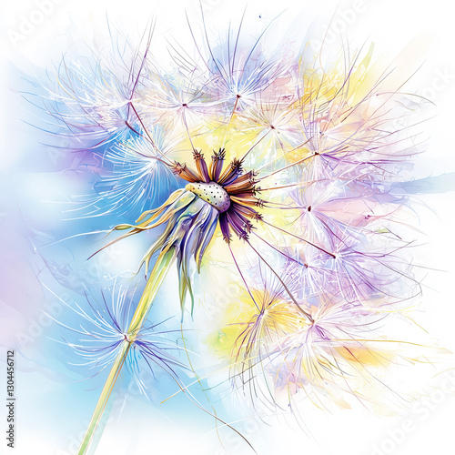 Naklejka premium Artistic watercolor dandelion with colorful pastel tones and details