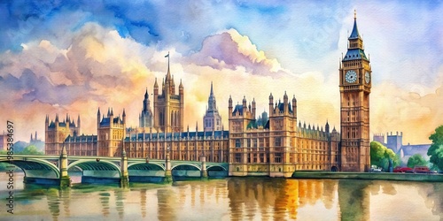 Fototapeta premium Artistic watercolor painting of Big Ben and the Houses of Parliament in London, England , art, watercolor