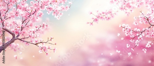 Fototapeta premium Artistic watercolor painting of cherry blossom tree branches, botanical,...