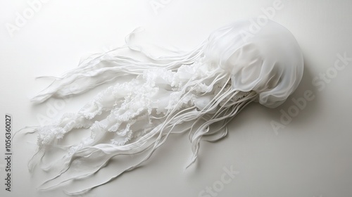 Obraz premium Artistic white surface displaying a detailed jellyfish, emphasizing its...