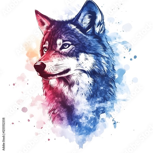 Naklejka premium Artistic wolf portrait with vibrant color splash