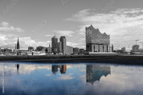 © UniqueLikeYou, Fototapeta premium Artwork - Colored Grey Hamburg reflection