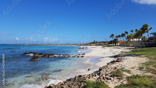 © Michael, Fototapeta premium Aruba beach with palm trees