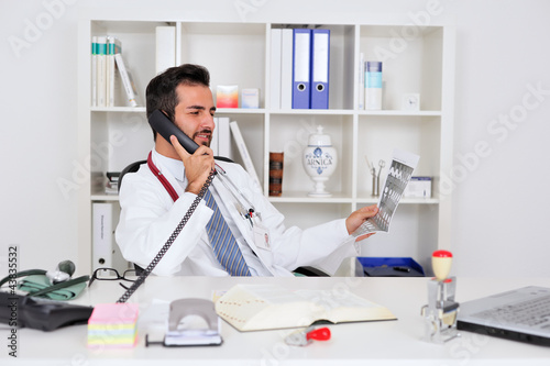 Fototapeta premium Arzt telefoniert und betrachtet ein CT