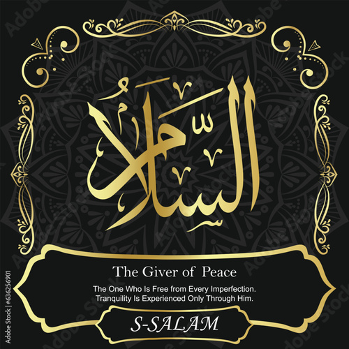 © Islamic Calligraphy, Fototapeta premium AS-SALAM. The Giver of Peace. 99 Names of ALLAH. The MOST IMPORTANT THING about our calligraphy is that they are 100% ERROR FREE. All tachkilat and all spelling are 100% correct. أسماء الله الحسنى