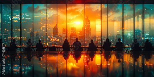 Obraz premium As the sun sets over the city, the group's reflections in the skyscraper's...