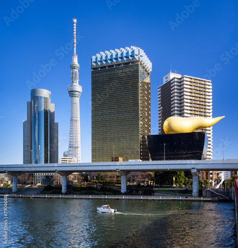 Obraz premium Asakusa Skyline in Tokyo mit Skytree und Asahi Gebäude