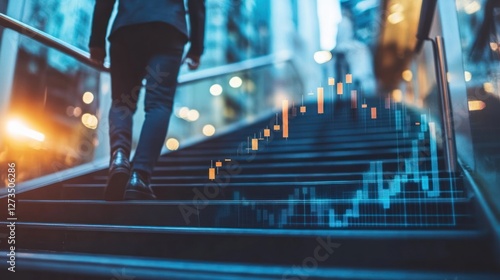 Fototapeta premium Ascending Business Success: A Man Climbing the Corporate Ladder Towards Financial Growth and Prosperity