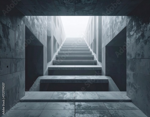 Fototapeta premium Ascending Steps to the Unknown: A minimalist architectural scene showcasing a...