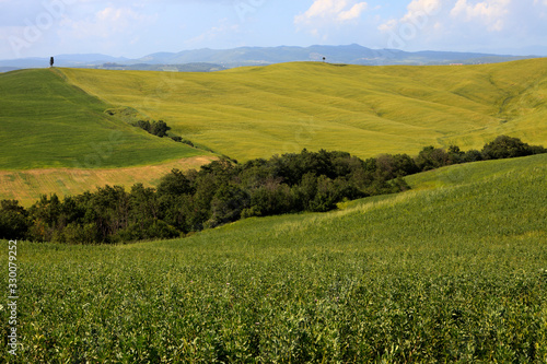 © PaoloGiovanni, Fototapeta premium Asciano (SI), Italy - June 01, 2016: Typical scenary of Crete Senesi, Asciano, Siena, Tuscany, Italy